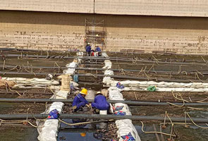 对贯穿裂缝,可采取封缝、埋管、化灌的方法处理。对非贯穿裂缝,因闭气的关系,难以将浆液灌到裂缝的尖顶区,从而不能消除该尖端区所形成的应力集中区,故处理中应周密考虑各种因素,提高浆液的充填率。对于温度裂缝,考虑到混凝土建筑对气温的“滞后效应”,一般选择在混凝土体温度的低点进行灌浆堵渗漏水处理,效果较好。